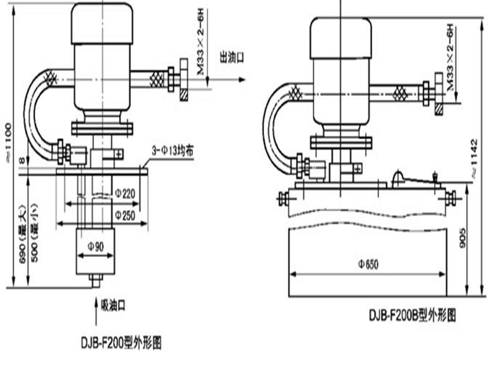 DJB-F200型电动加油泵适用干油集中润滑系统中向电动或手动润滑泵的贮油器内充填润滑脂。该泵为直齿圆柱齿轮啮合的定量容积泵,分带贮油桶和不带贮油桶两种型式。